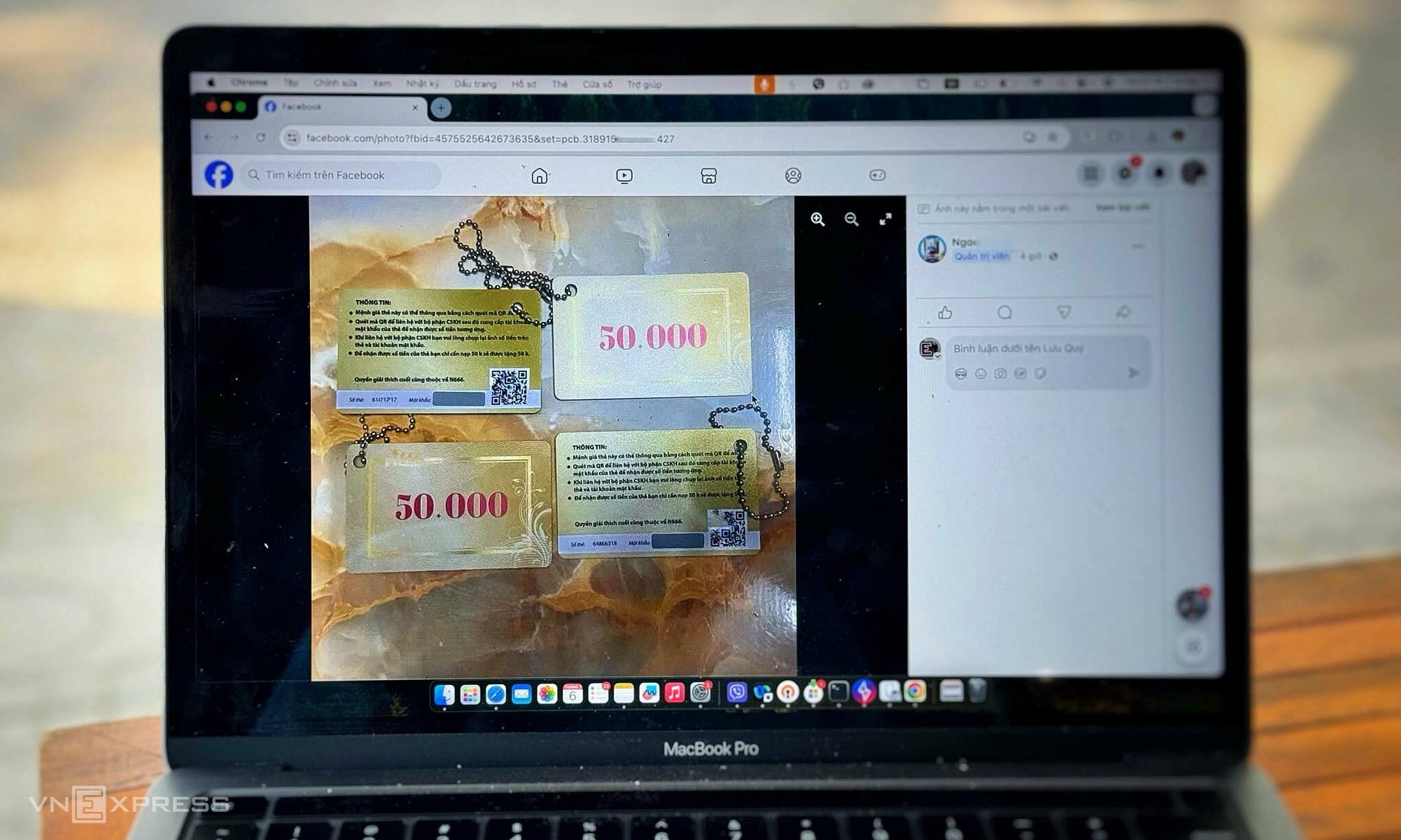 Trên mạng xã hội,một số người cho biết nhận được các tấm thẻ nhựa in những con số 30.000,50.000,100.000,được treo trước cửa nhà hoặc trên xe máy. Theo thông tin trên thẻ,người dân muốn nhận số tiền tương ứng cần quét mã QR để "gặp bộ phận chăm sóc khách hàng",nhập thông tin thẻ cũng như nạp vào 50 nghìn đồng.