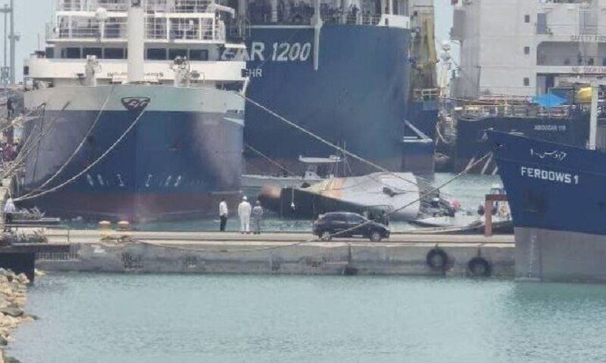 Tàu Sahand bị lật và chìm một phần trong bức ảnh đăng ngày 7/7. Ảnh: IRNA