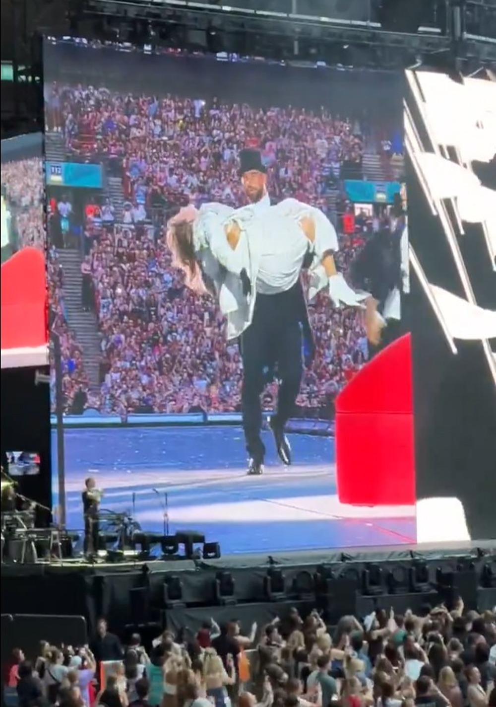Travis Kelce bế Taylor Swift trên sân khấu The Eras Tour