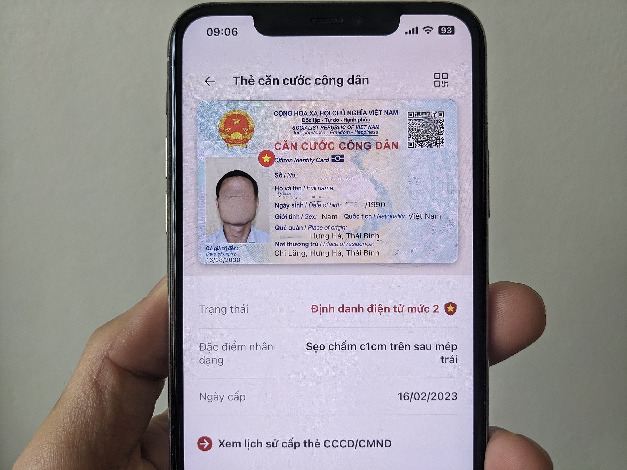Hình ảnh thẻ căn cước công dân hiển thị trên ứng dụng VNeID,tháng 6/2024. Ảnh: Viết Tuân