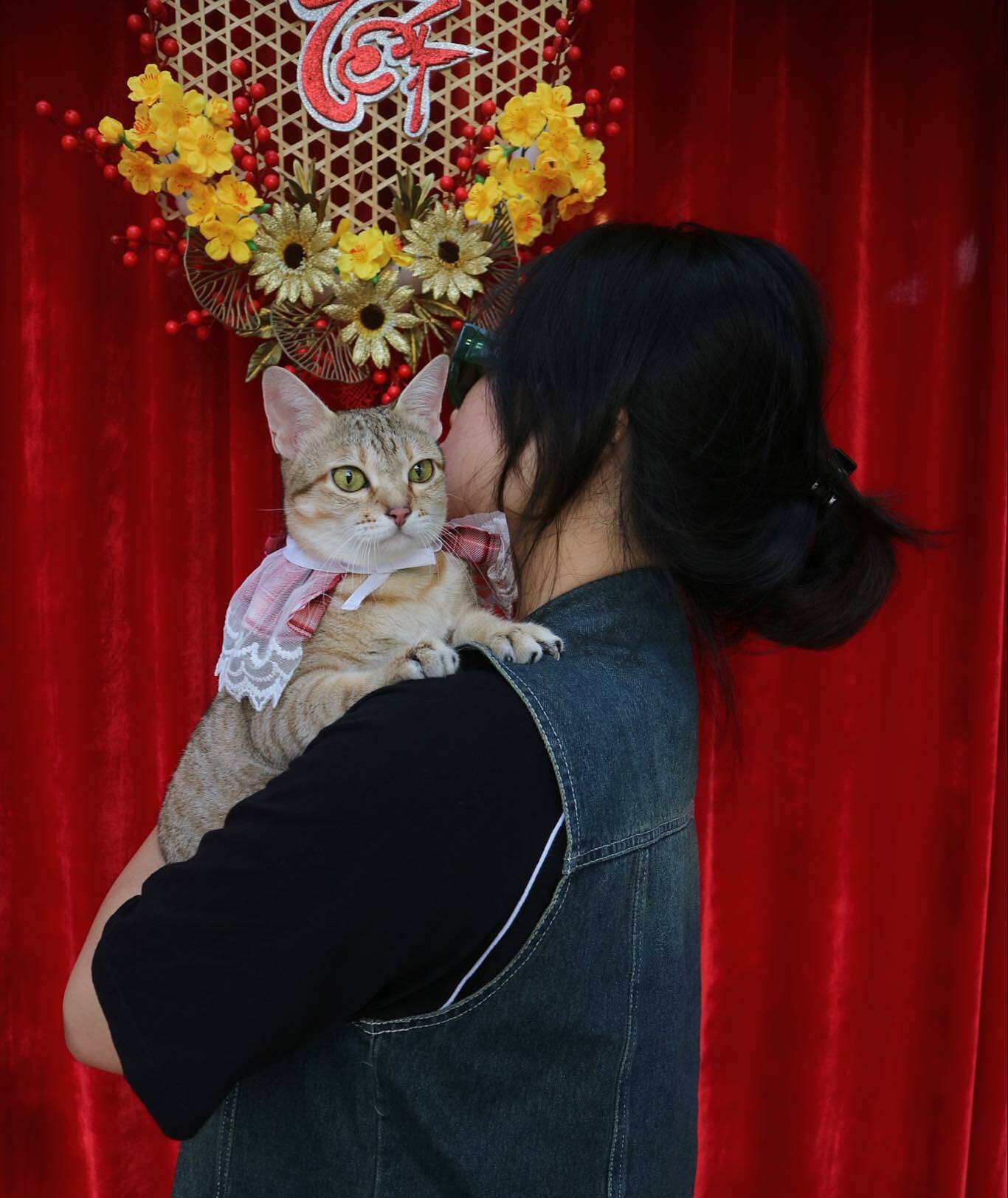 Thùy Dương và chú mèo tên Vi chi ba triệu đồng đến một studio tại TP HCM chụp ảnh đón Tết 2024. Ảnh: Nhân vật cung cấp