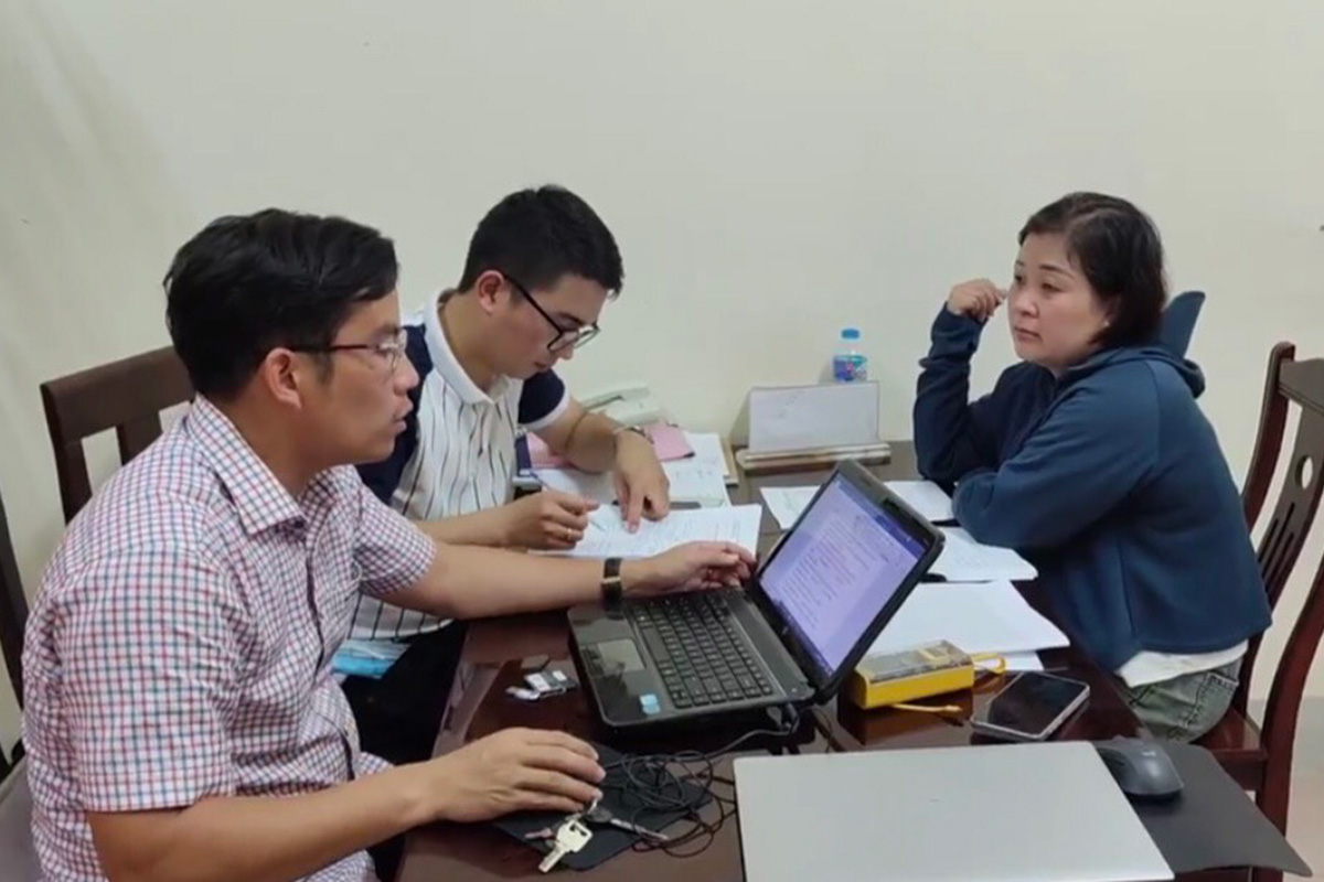 Lê Thị Hồng Vui (trái) tại cơ quan điều tra. Ảnh: Ngọc Oanh