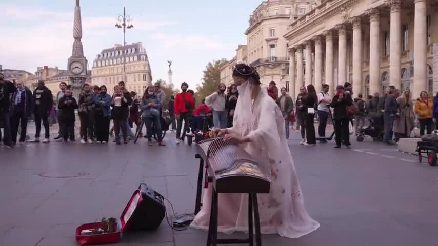 Mỹ nữ Trung Quốc tung kiếm,gảy đàn trên phố Paris