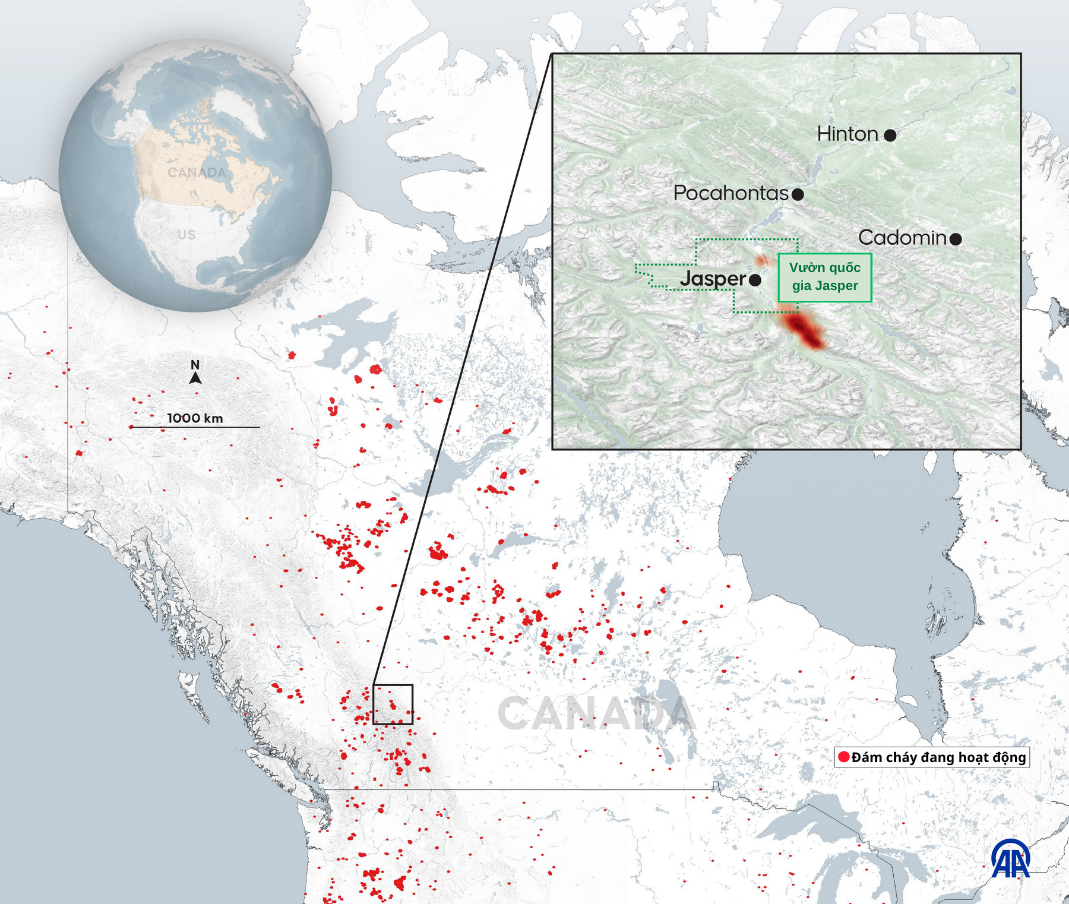 Đám cháy lớn nhất thế kỷ ở Jasper,Alberta,Canada. Đồ họa: AA