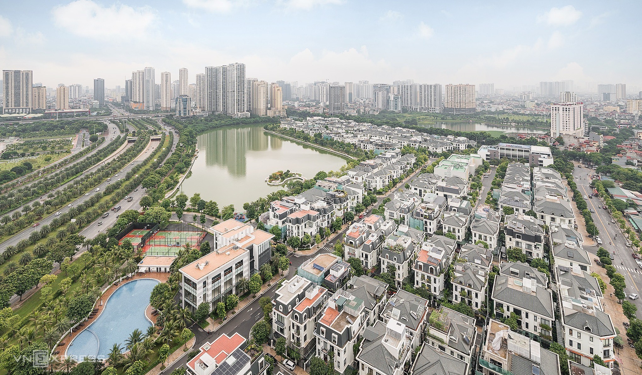 Một phân khu biệt thự gần hồ tại phía Tây Hà Nội. Ảnh: Quốc Tuấn