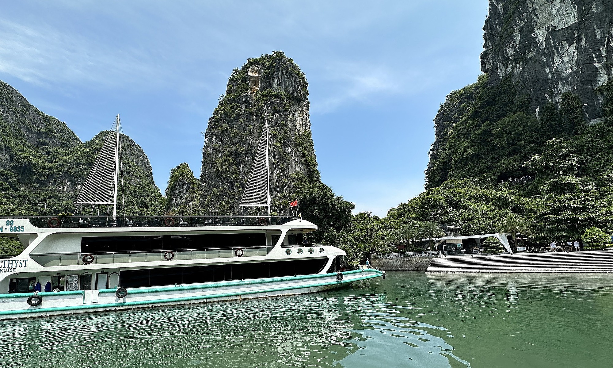 Tàu du lịch chở khách tham quan vịnh Hạ Long trong ngày ở khu vực hang Sửng Sốt sáng 5/9. Ảnh: Duy Anh