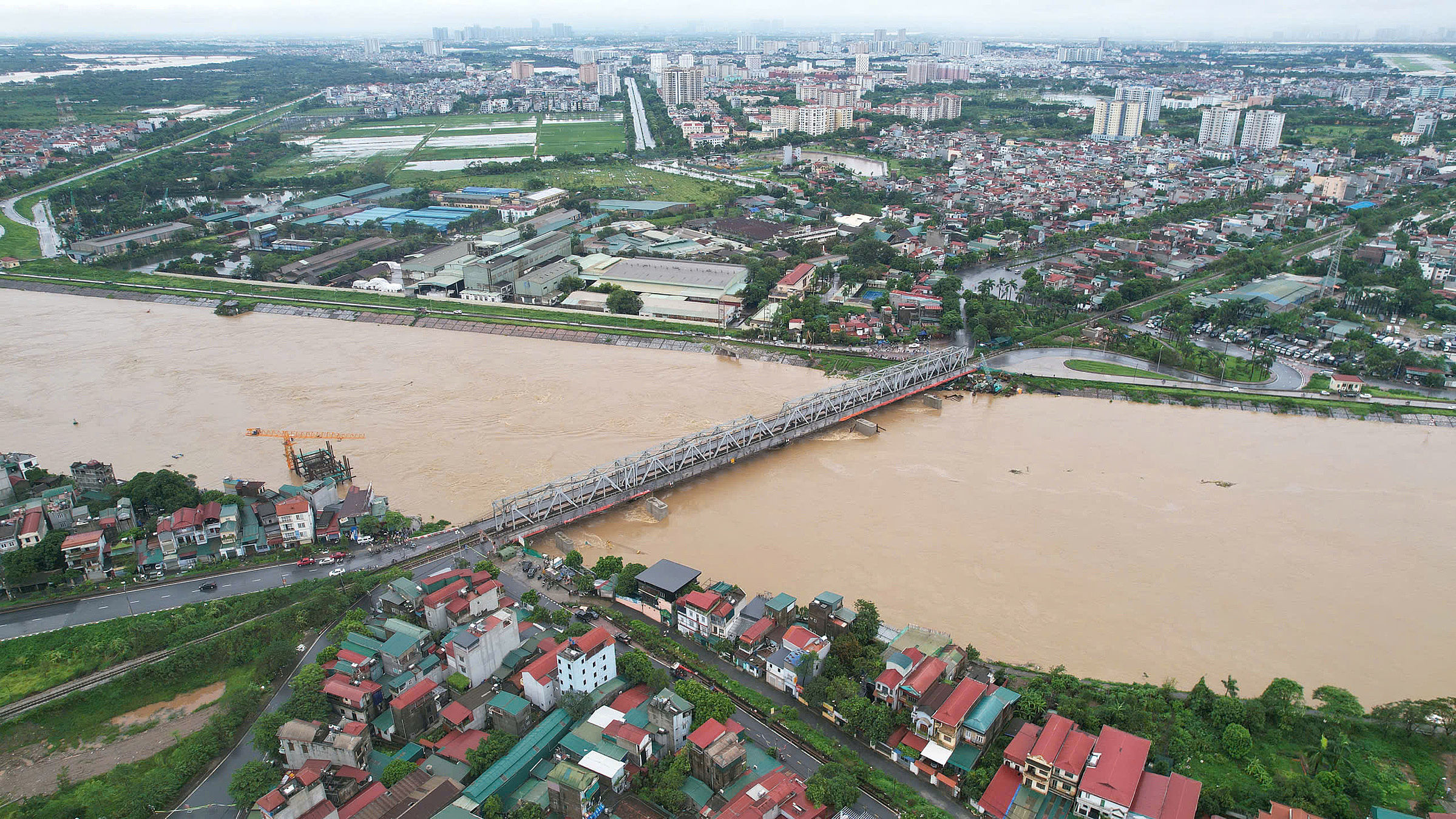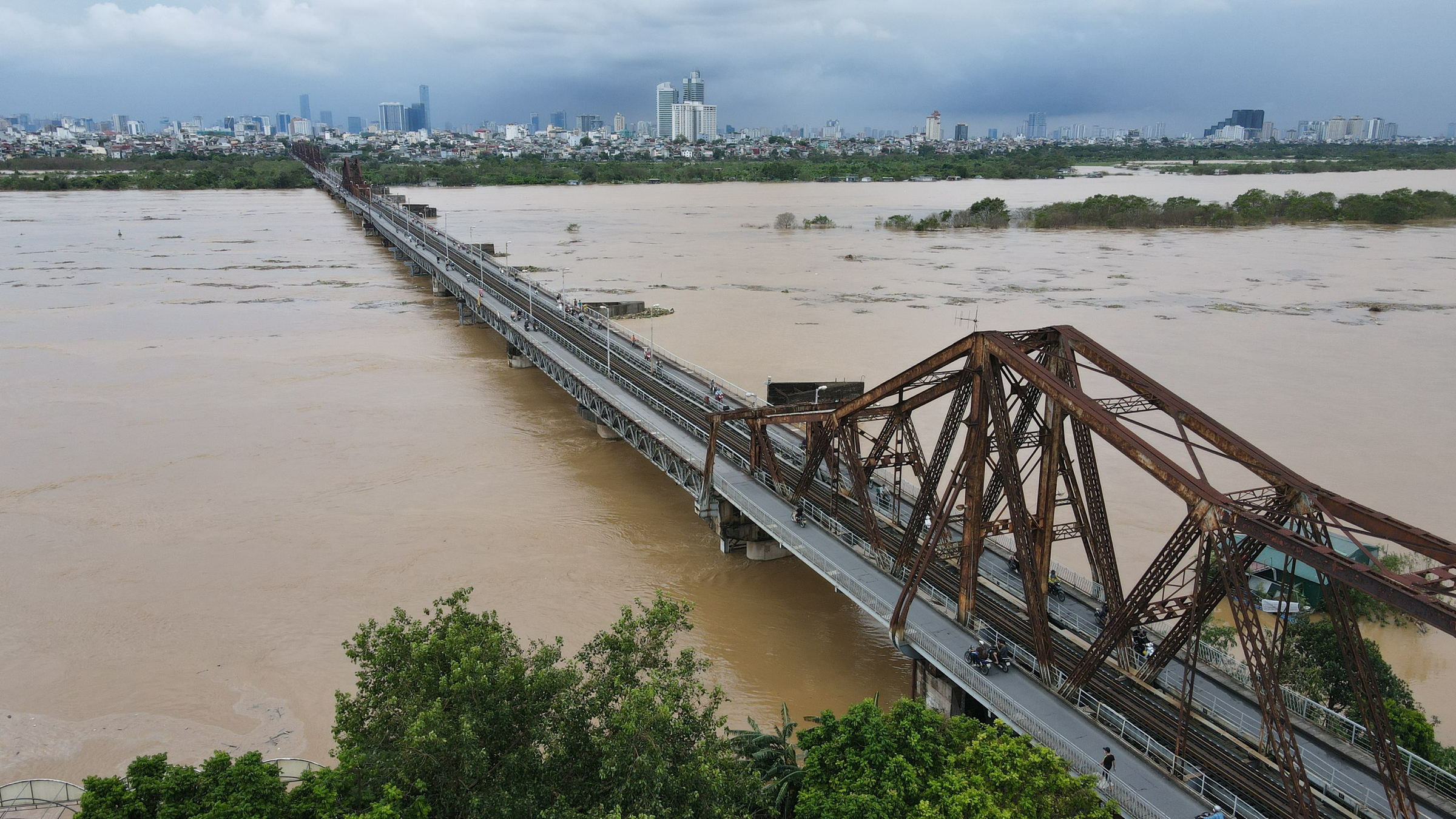 Ba ngày trước,UBND TP Hà Nội cấm tất cả phương tiện qua cầu Long Biên do nước sông Hồng lên báo động một 9,5 m (mức lũ cao nhất tại đây từ năm 2008). Sau đó vài giờ,UBND TP Hà Nội cũng ban hành quyết định cấm người và phương tiện đi qua cầu Đuống để đảm bảo an toàn.