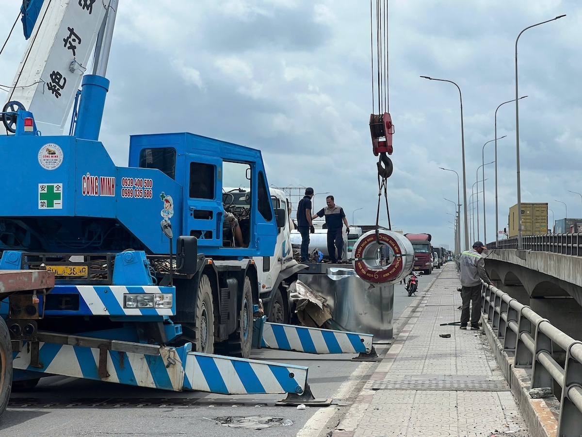 Khoảng 11h,xe đầu kéo chở 4 cuộn thép chạy trên quốc lộ 1 hướng TP HCM - Bình Thuận. Khi đến cầu Đồng Nai (nối TP Dĩ An,Bình Dương và TP Biên Hòa),tài xế thắng gấp để tránh xe phía trước khiến dây xích bị đứt. Các cuộn thép trên xe đầu kéo nhào về phía cabin,rồi lăn xuống đường.