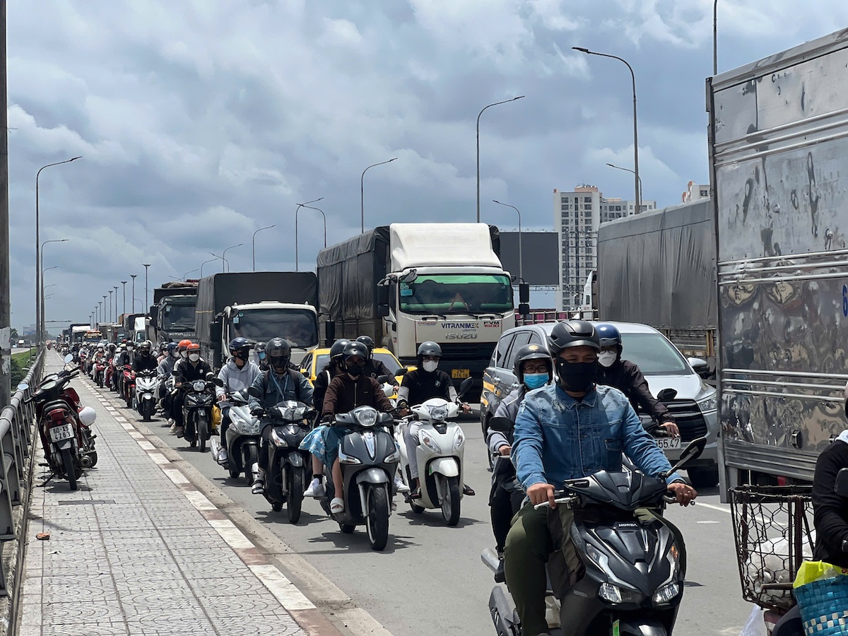 Quốc lộ 1 qua cầu Đồng Nai kẹt xe kéo dài. Ảnh: Thái Hà