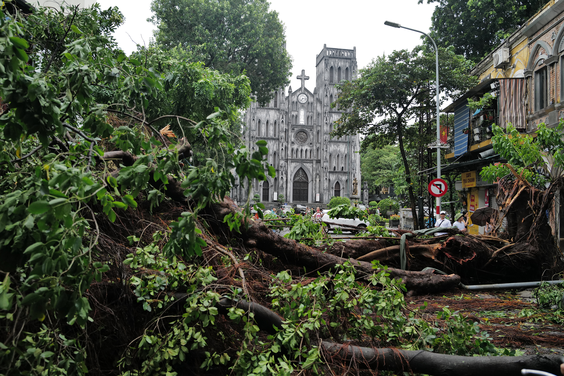 Đường phố Hà Nội bị chia cắt vì cây đổ sau khi bão Yagi quét qua ngày 8/9/2024. Ảnh: Ngọc Thành