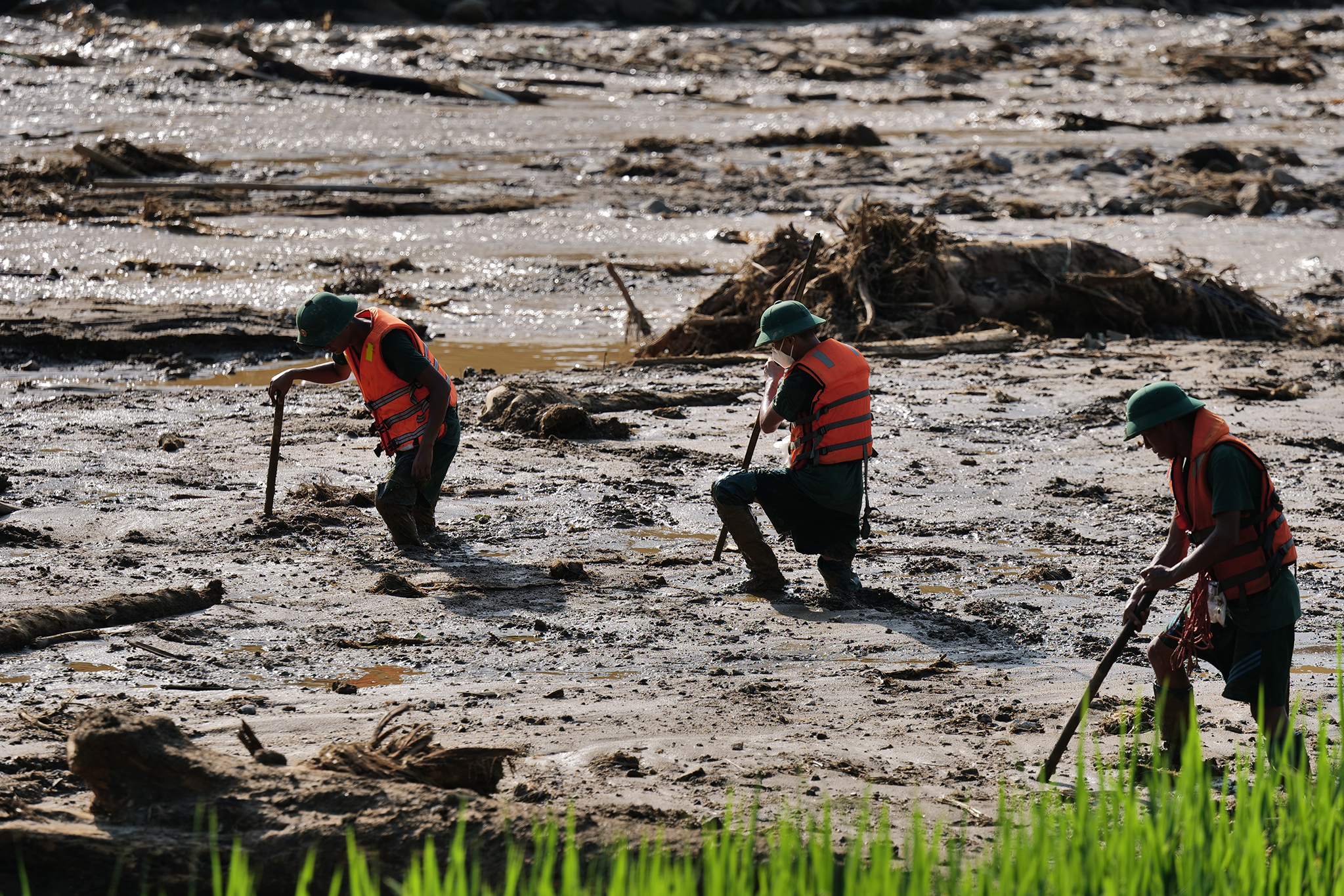 Bộ đội tìm kiếm thi thể nạn nhân Làng Nủ,Lào Cai,ngày 12/9. Ảnh: Ngọc Thành