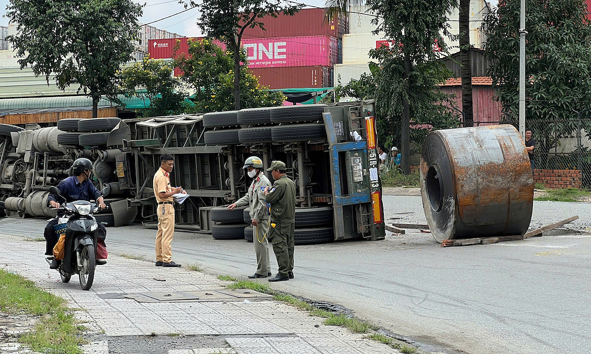 Khoảng 9h30,nam tài xế lái xe đầu kéo biển số TP HCM chở cuộn thép nặng hàng chục tấn đi trên quốc lộ 1 hướng Khu du lịch Suối Tiên đi Bình Thuận. Khi đến chân cầu Đồng Nai thuộc phường Bình Thắng,TP Dĩ An,ôtô chạy xuống gầm cầu để quay đầu. Trong lúc ôm cua dưới gầm cầu,xe chao đảo rồi lật nhào.