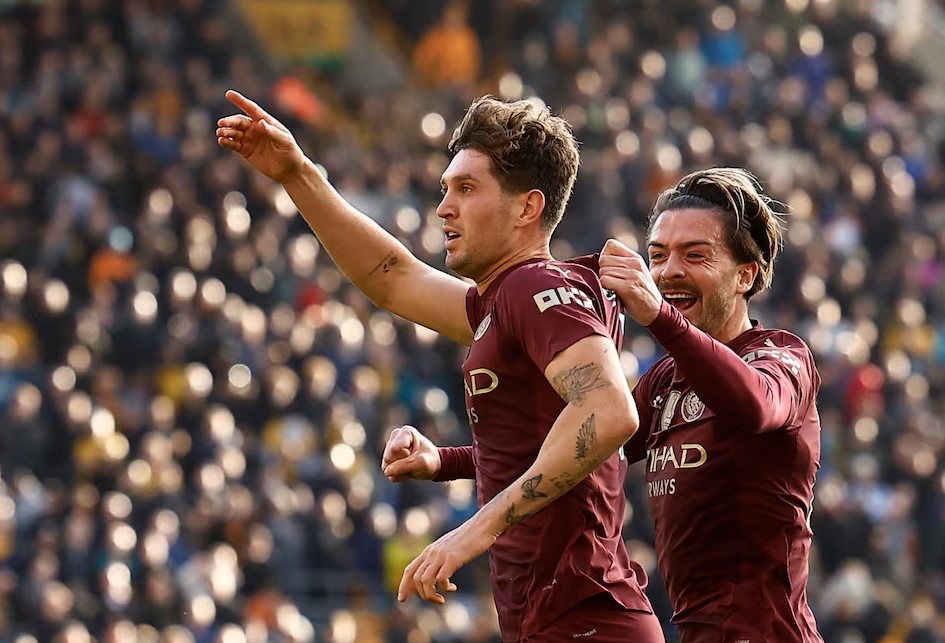 John Stones ăn mừng sau khi ghi bàn quyết định giúp Man City thắng Wolves 2-1 trên sân Molineux ngày 20/10/2024. Ảnh: Reuters.