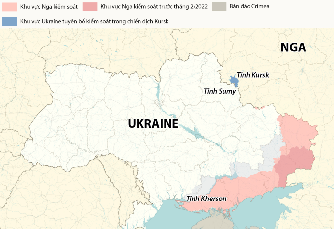 Sau khi chiến sự bùng phát hồi tháng 2/2022,Nga nhanh chóng kiểm soát toàn bộ tỉnh Kherson. Nhờ chiến dịch phản công chớp nhoáng cuối năm 2022,Ukraine đã giành lại các khu vực bên bờ tây sông Dnieper. Moskva sau đó tuyên bố sáp nhập tỉnh Kherson và hiện kiểm soát hơn 70% diện tích lãnh thổ ở tỉnh này.
