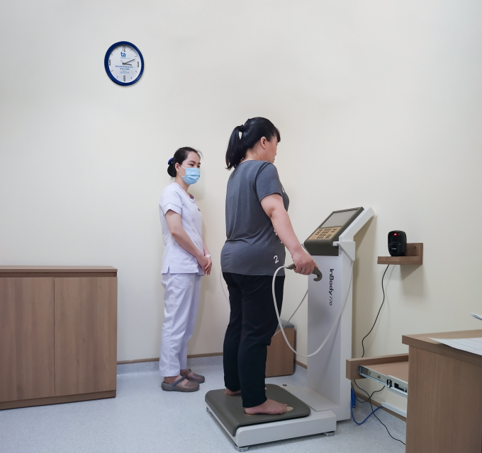 Người bệnh được đo chỉ số inbody tại Bệnh viện Đa khoa Tâm Anh TP HCM. Ảnh: Bệnh viện cung cấp