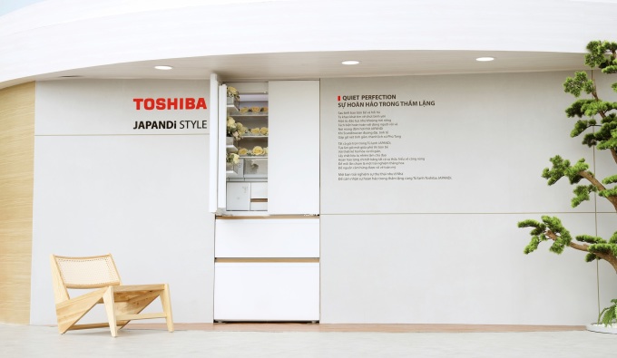 Nổi bật tại không gian trải nghiệm là tủ lạnh Toshiba Japandi với đường nét thiết kế liền mạch,tích hợp nhiều công nghệ để đáp ứng nhu cầu sống khỏe mạnh. Giới thiệu mẫu tủ lạnh ra thị trường là bước đầu của thương hiệu nhằm hiện thực hóa mục tiêu mang phong cách sống Japandi đến gần hơn với người dùng Việt.