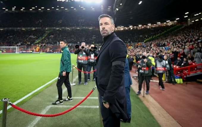 HLV tạm quyền Ruud Van Nistelrooy trước trận Man Utd thắng PAOK ở lượt bốn Europa League. Ảnh: EPA