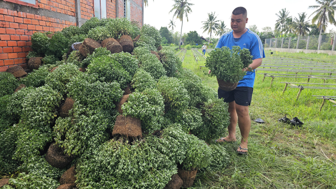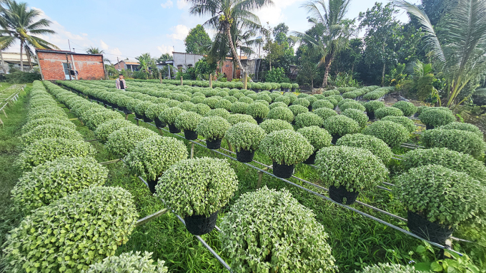 Với thâm niên 5 năm trồng cúc mâm xôi bán Tết,anh Nhút Em cho biết mỗi năm xuất bán khoảng 3.000 giỏ hoa,thời điểm trúng giá thu lãi hàng trăm triệu đồng. Vụ hoa Tết năm nay,anh mua hơn 1.500 chậu cây cúc mâm xôi giống loại bông vàng từ một cơ sở quen nhiều năm ở xã. Cây phát triển khá tốt,xanh mướt được thương lái đặt cọc với giá gần 160.000 đồng mỗi cặp. Song,đến thời điểm này,cây vẫn chưa ra nụ nào.