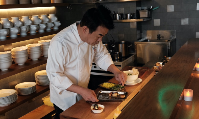 Đầu bếp nhà hàng Michelin đầu tiên ở TP HCM - Peter Cường Franklin,chế biến món mì Quảng. Ảnh: Bích Phương