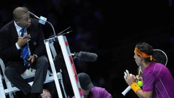 Trọng tài Bernardes (trái) tranh cãi với Nadal trong một trận đấu ở ATP Tour. Ảnh: Tennisworld
