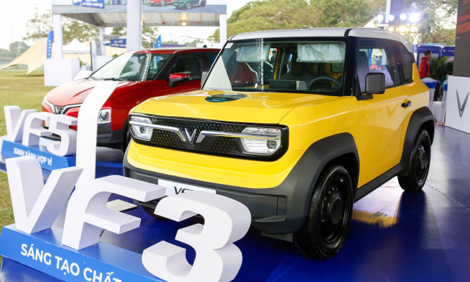VinFast VF 3 tại Triển lãm Phương tiện di chuyển bền vững Việt Nam 2024. Đây cũng là mẫu xe có doanh số bán tốt nhất của VinFast. Ảnh: Lương Dũng