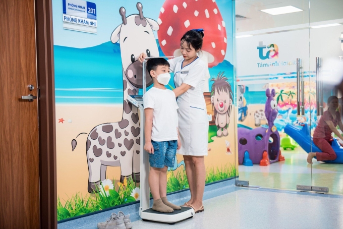 Trẻ theo dõi sự phát triển chiều cao tại Bệnh viện Đa khoa Tâm Anh Hà Nội. Ảnh minh họa: Bệnh viện cung cấp
