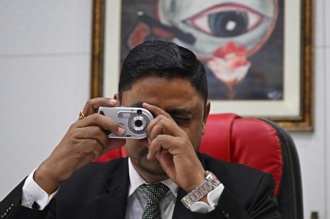Sanjay Singh giới thiệu máy ảnh theo dõi trong văn phòng ở New Delhi ngày 4/12. Ảnh: AFP