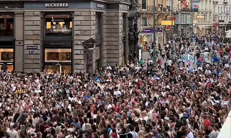 Người hâm mộ hát vang các ca khúc của Taylor Swift trên phố Vienna hồi tháng 8. Video: TikTok Barlint Barbara