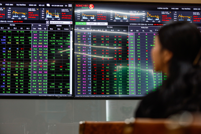 Nhà đầu tư đang quan sát bảng điện chứng khoán. Ảnh: An Khương