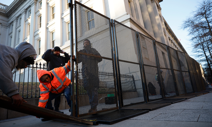 Công nhân dựng rào chắn an ninh quanh khu phức hợp Nhà Trắng hôm 13/1 để phục vụ cho lễ nhậm chức của ông Trump. Ảnh: AFP
