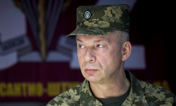 Tướng Syrsky trong chuyến thăm lữ đoàn tham chiến tại tỉnh Sumy tháng 10/2024. Ảnh: AFP