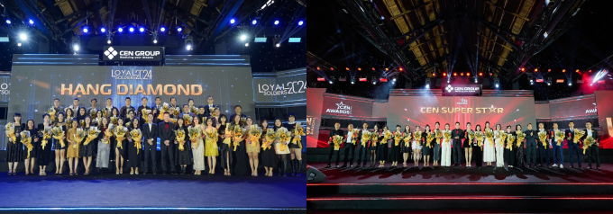 Hạng mục Diamond tri ân cá nhân đã đồng hành,cống hiến 10-15 năm (trái). Giải Cen Super Star tôn vinh cá nhân xuất sắc (phải). Ảnh: Cen Group