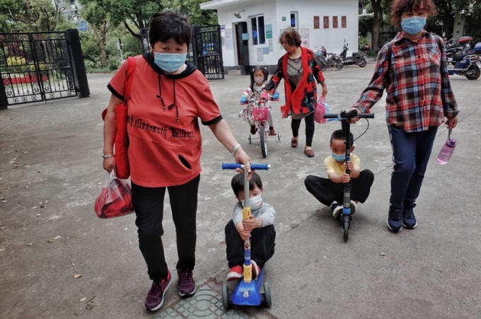 Các bà đưa cháu đi chơi ở một công viên Thượng Hải hồi tháng 5/2020. Ảnh: VCG