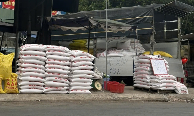 "Gạo tồn kho,khó xuất khẩu,phải bán dạo gỡ vốn. Nhờ giá rẻ nên gạo tôi bán thu hút được nhiều người mua",anh giải thích.