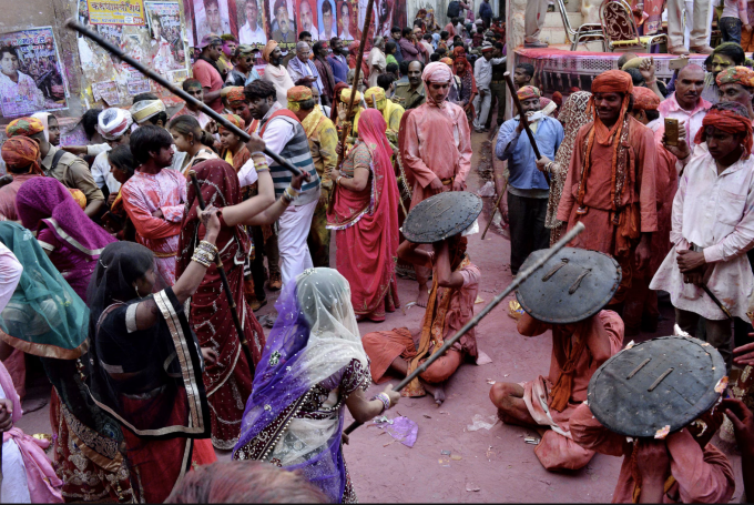 Lễ hội Holi tại hai thị trấn sinh đôi Barsana và Nandgaon,Ấn Độ. Ảnh: AFP