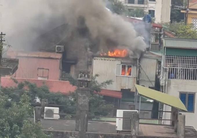 Khói bốc ra từ căn nhà cháy. Ảnh: Việt An
