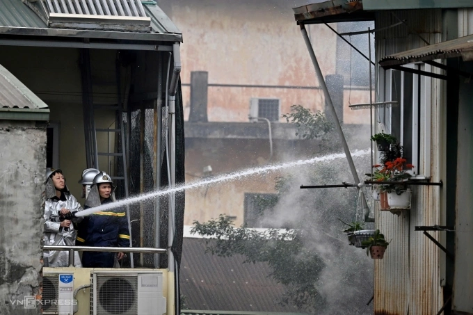 Ban đầu do khó khăn trong tiếp cận và dẫn đường ống nước,một số chiến sĩ sử dụng nguồn nước từ nhà dân để khống chế đám cháy.