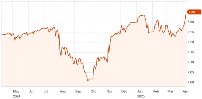 Ngày 10/4,Ngân hàng Trung ương Trung Quốc (PBOC) thiết lập tỷ giá tham chiếu tại 7,2092 CNY một USD. Đây là mức yếu nhất kể từ tháng 9/2023. Giá nhân dân tệ được phép biến động trong biên độ 2%.