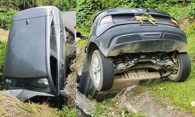 Chiều 2/5,anh Đỗ Tấn Quy (26 tuổi,huyện Bắc Trà My) gặp tai nạn khi lái chiếc VinFast VF 6 (phiên bản Eco),trên địa bàn xã Trà Don,huyện Nam Trà My. Theo anh Quy,hai người đi xe máy ngược chiều lấn làn có dấu hiệu say xỉn. Để tránh va chạm trực diện,anh đánh lái gấp,khiến xe lao vào taluy cùng chiều,tông gãy hai cột mốc và đâm trực diện xuống hố ở ven đường.