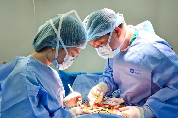 Bác sĩ Bệnh viện Đa khoa Tâm Anh mổ cắt tuyến giáp cho bệnh nhân. Ảnh: Hạ Vũ