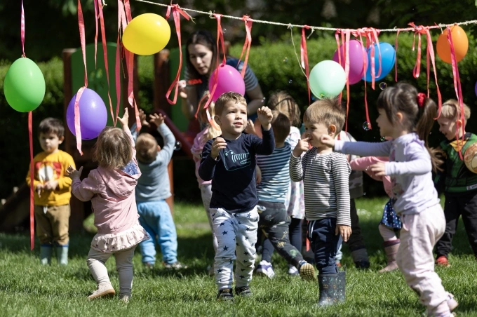 Trẻ em vui chơi trong nhà trẻ Grigor Vitez ở Samobor ngày 15/4. Ảnh: AFP