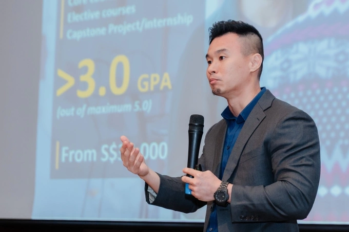 "NUS xét tuyển dựa trên quá trình đánh giá toàn diện. Để hồ sơ thêm mạnh,ứng viên nên tối ưu điểm số kỹ năng,tạo ấn tượng tốt trong mắt nhà tuyển sinh",ông Benjamin Tey nhấn mạnh.