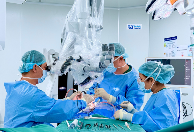 Bác sĩ phẫu thuật loại bỏ khối u mạch máu cho ông Hùng bằng kỹ thuật vi phẫu hiện đại. Ảnh: Bệnh viện Đa khoa Tâm Anh