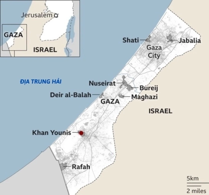 Vị trí các khu vực ở Dải Gaza. Đồ họa: BBC