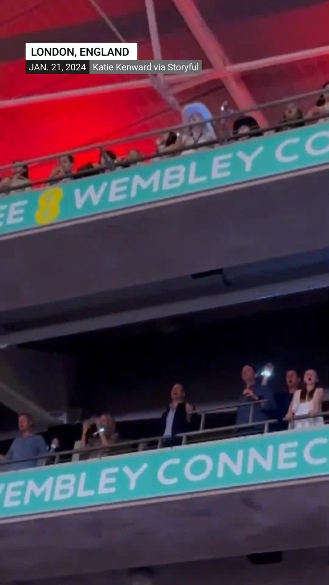 Thái tử Anh William (áo đen) nhảy trong đêm nhạc Taylor Swift ở London ngày 21/6. Video: Global News