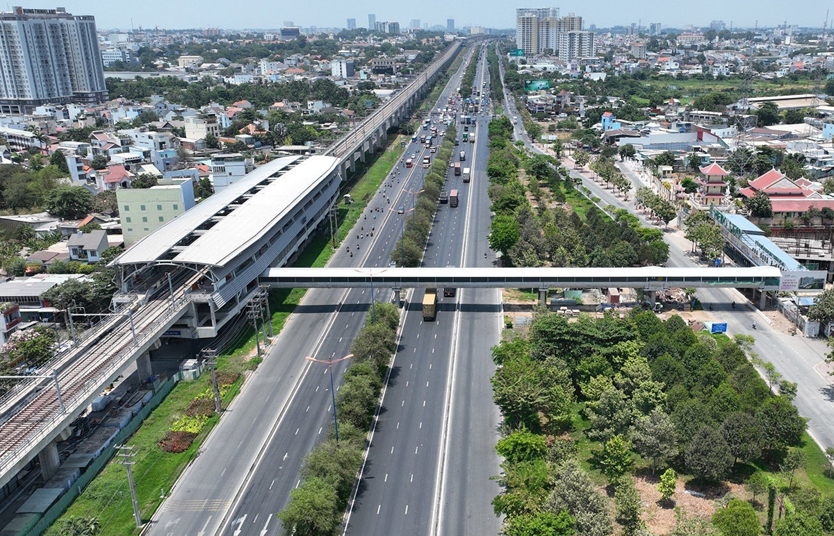 Cách ngã tư Thủ Đức hơn 2 km,cầu đi bộ nối ga Bình Thái đã hoàn thành. Ảnh: Gia Minh