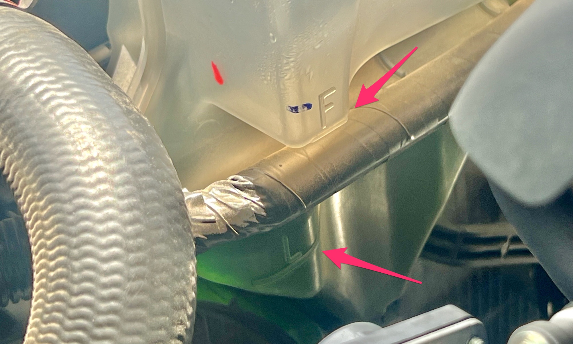 Vạch biểu thị mức nước làm mát trên (F) và dưới (L) trên.một mẫu xe Nhật. Ảnh: Hồ Tân