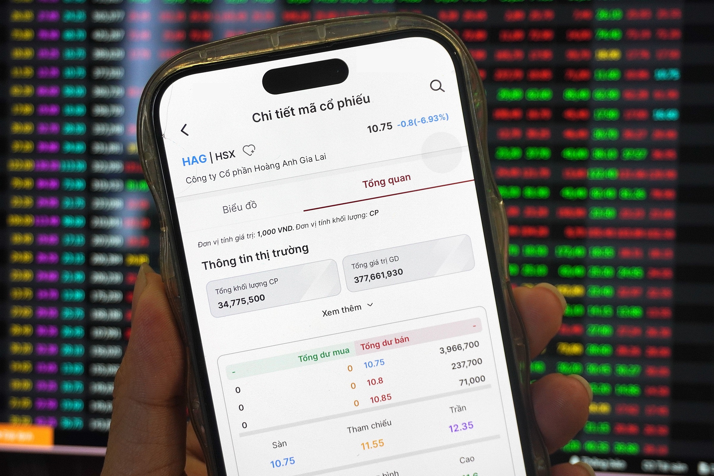 Mã chứng khoán của Công ty cổ phần Hoàng Anh Gia Lai (HAG) có một phiên giao dịch khá biến động. Mở cửa với bên bán chiếm ưu thế,HAG nhanh chóng rơi về giá sàn chỉ trong một tiếng. Sau đó,dòng tiền bắt đáy tham gia giúp nâng nhẹ giá cổ phiếu này. Tuy nhiên sang buổi chiều,mã này tiếp tục giảm về mức kịch sàn 10.750 đồng một đơn vị và giữ cho đến cuối phiên.