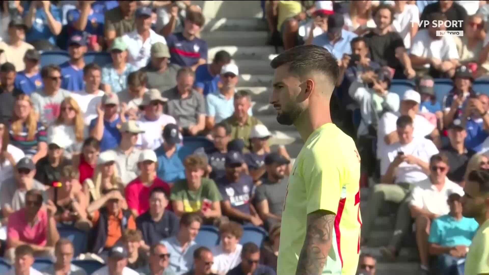Trên sân Parc des Princes ngày 9/8,Pháp khởi đầu hoàn hảo khi vượt lên nhờ công Enzo Millot. Nhưng sau đó,Tây Ban Nha liên tiếp ghi ba bàn,nhờ cú đúp của Fermin Lopez và siêu phẩm đá phạt của Alex Baena,để bước vào giờ nghỉ với lợi thế dẫn 3-1. Pháp trở thành đội thứ hai thủng lưới ba bàn trong hiệp một chung kết bóng đá nam Olympic,sau khi Đan Mạch thua Anh 2-4 năm 1912.
