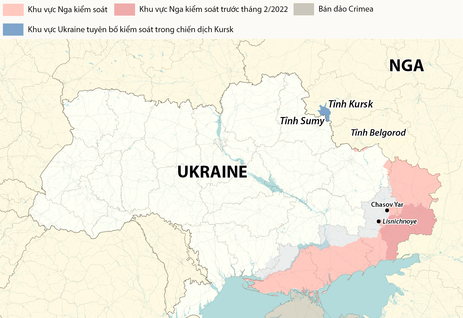 Giao tranh hiện diễn ra ác liệt ở tỉnh giáp Belgorod là Kursk,sau khi quân đội Ukraine sáng 6/8 triển khai binh sĩ cùng xe tăng,thiết giáp tràn vào vùng này. Nga đã ban bố tình trạng khẩn cấp liên bang ở Kursk từ 9/8.